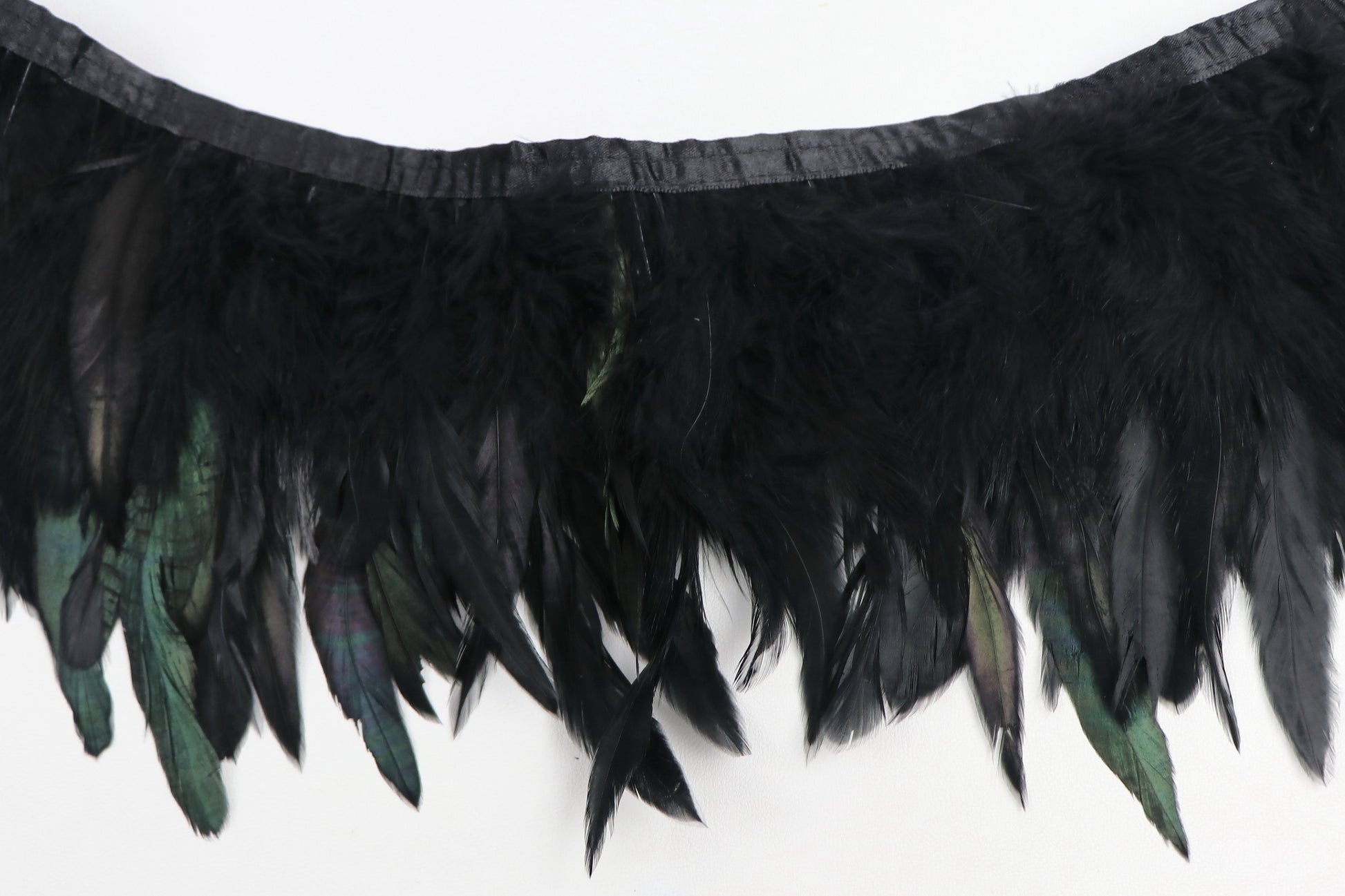 - Hühnerfedern eingefasst mit schwarzem Band