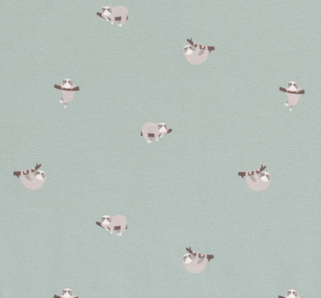 Baumwolle Jersey bedruckt mit Faultieren in der Farbe babyblau, ist Teil unserer Kinderstoffe-Kollektion. Dieser Stoff hat eine Breite von 150cm und ein Gewicht von 200g/m2.