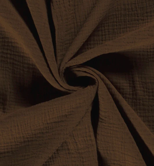 Uni-Musselin in der Farbe braun, ist Teil unserer Basics-Kollektion. Dieser Stoff hat eine Breite von 130cm und ein Gewicht von 135g/m2.