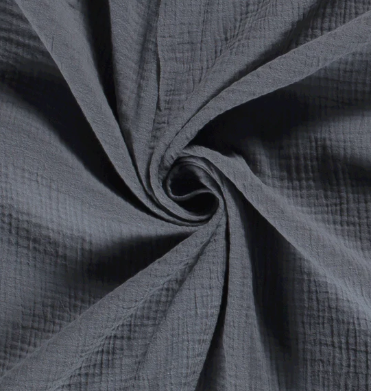 Uni-Musselin in der Farbe stahlblau, ist Teil unserer Basics-Kollektion. Dieser Stoff hat eine Breite von 130cm und ein Gewicht von 135g/m2.