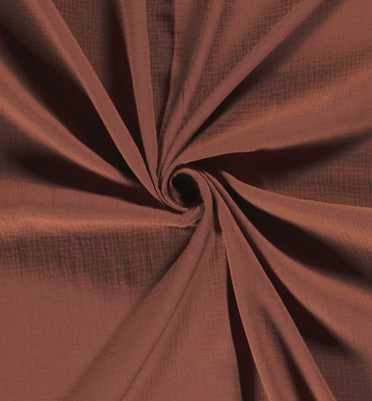 Uni-Musselin in der Farbe ziegel, ist Teil unserer Basics-Kollektion. Dieser Stoff hat eine Breite von 130cm und ein Gewicht von 135g/m2.