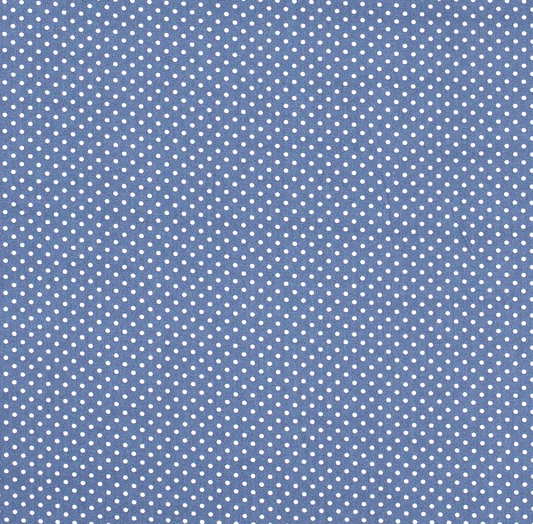 Baumwolle Popeline bedruckt mit Punkten in der Farbe indigoblau, ist Teil unserer Basics-Kollektion. Dieser Stoff hat eine Breite von 140cm und ein Gewicht von 135g/m2.