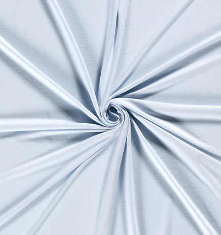 Viskose Jersey uni in der Farbe babyblau, ist Teil unserer perfect Basics-Kollektion. Dieser Stoff hat eine Breite von 155cm und ein Gewicht von 230g/m2.