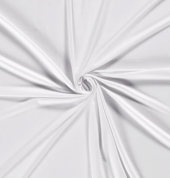 Viskose Jersey uni in der Farbe weiss, ist Teil unserer perfect Basics-Kollektion. Dieser Stoff hat eine Breite von 155cm und ein Gewicht von 230g/m2.