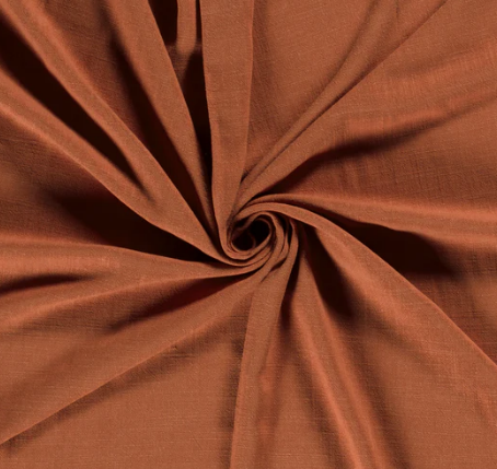 Gewebter Viskose-Leinen Stoff uni in der Farbe ziegel, ist Teil unserer Modestoffe-Kollektion. Dieser Stoff hat eine Breite von 135cm und ein Gewicht von 220g/m2.