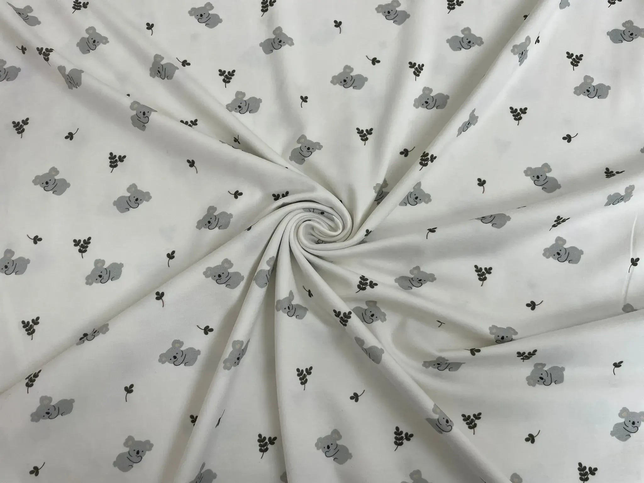 Entdecken Sie unseren wunderschönen Baumwolljersey mit niedlichem Koala-Bär-Motiv in warmem Wollweiss. Der weiche, elastische Stoff eignet sich perfekt für gemütliche Kinderkleidung, kuschelige Pyjamas oder entspannte Freizeitoutfits. Die hochwertige Baumwollmischung bietet optimalen Tragekomfort und Langlebigkeit. Das charmante Koala-Design bringt Freude in jeden Nähprojekt und macht diesen Jersey zu einem Lieblingsstoff für kleine und grosse Näherinnen. Ideal für Anfänger und erfahrene Näher gleichermaßen.