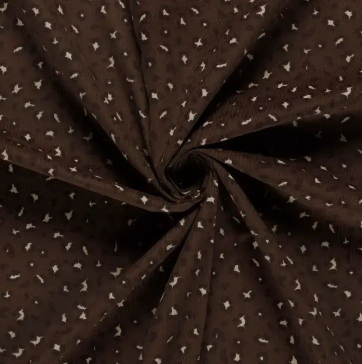 Entdecken Sie unseren hochwertigen Feincord Stoff in elegantem Leoparden-Design. Das feine Cord-Material besticht durch seine samtweiche Oberfläche und robuste Verarbeitung – perfekt für Kleidungsstücke, Accessoires oder Heimtextilien. Die warme Brauntönung mit charakteristischem Leoparden-Muster verleiht jedem Projekt eine stilvolle Note. Vielseitig einsetzbar und angenehm zu tragen, ist dieser Stoff die ideale Wahl für kreative Nähprojekte mit Charakter.