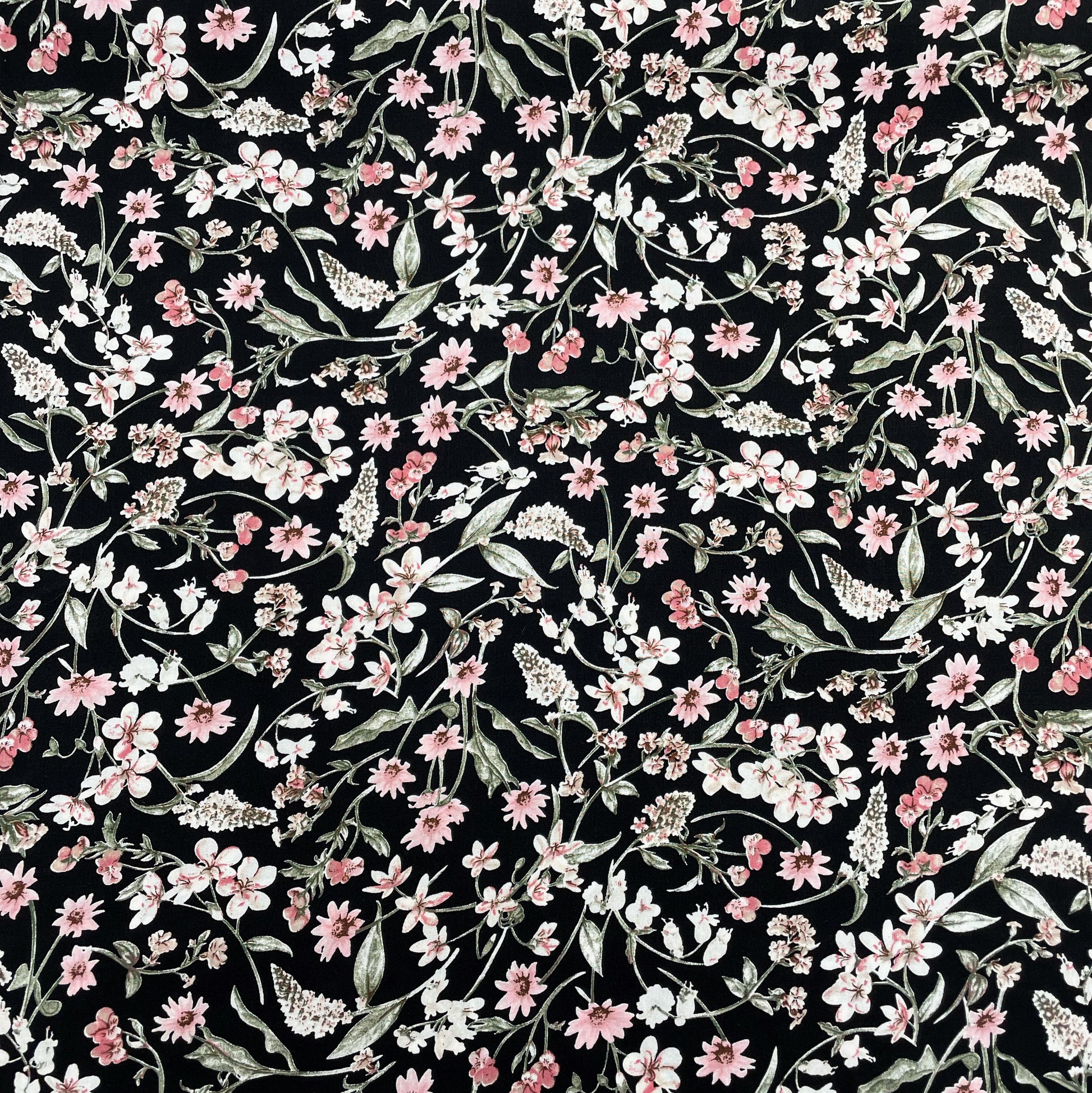 Viskose bedruckt mit Blumen in der Farbe schwarz, ist Teil unserer Modestoffe-Kollektion. Dieser Stoff hat eine Breite von 150cm und ein Gewicht von 105g/m2.