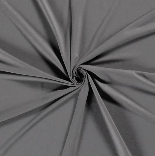 Viskose Jersey uni in der Farbe mittelgrau, ist Teil unserer perfect Basics-Kollektion. Dieser Stoff hat eine Breite von 155cm und ein Gewicht von 230g/m2.