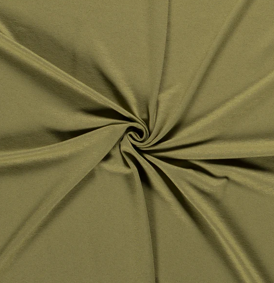 Viskose Jersey uni in der Farbe olivegrün, ist Teil unserer perfect Basics-Kollektion. Dieser Stoff hat eine Breite von 155cm und ein Gewicht von 230g/m2.