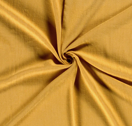 Gewebter Viskose-Leinen Stoff uni in der Farbe ocker, ist Teil unserer Modestoffe-Kollektion. Dieser Stoff hat eine Breite von 135cm und ein Gewicht von 220g/m2.