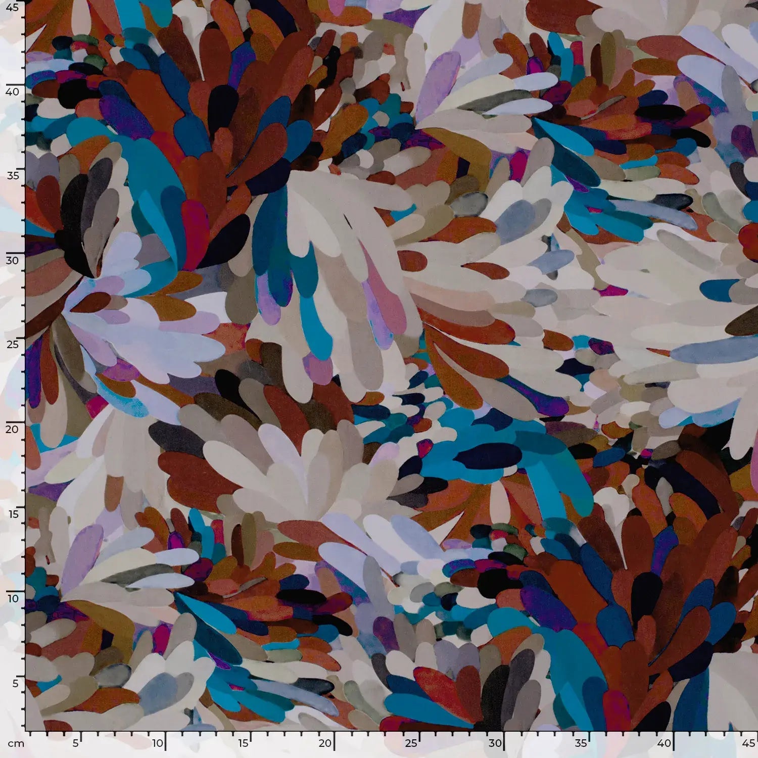 Die Viskose Popeline mit abstraktem, mehrfarbigem Muster verleiht Ihren Kreationen einen lebendigen und modernen Look. Dieser leichte, atmungsaktive Stoff bietet angenehmen Tragekomfort und lässt sich vielfältig einsetzen – von eleganter Kleidung bis zu stilvollen Accessoires. Mit seiner glatten Oberfläche und satten Farben bringt er jedes Nähprojekt eindrucksvoll zur Geltung. Entdecken Sie die perfekte Mischung aus Design und Funktionalität für Ihre individuellen Ideen.