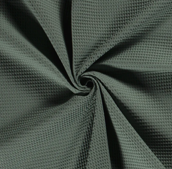 Waffelpiqué uni in der Farbe altes grün, ist Teil unserer Basics-Kollektion. Dieser Stoff hat eine Breite von 150cm und ein Gewicht von 235g/m2.