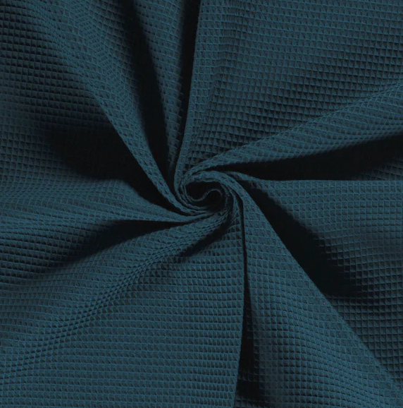 Waffelpiqué uni in der Farbe petrol, ist Teil unserer Basics-Kollektion. Dieser Stoff hat eine Breite von 150cm und ein Gewicht von 235g/m2.
