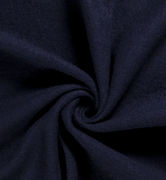 Walkloden in der Farbe marine, ist Teil unserer perfect Basics-Kollektion. Dieser Stoff hat eine Breite von 140cm und ein Gewicht von 410g/m2.